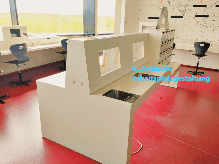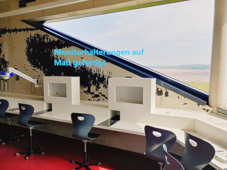 Für die Montitore wurden auf Kundenwunsch Halterungen auf Maß gefertigt und an die vorhandenen Arbeitplätze angepasst