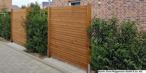 Es gibt viele Varianten an Material, z.B. Holz, WPC Material, Glas, Aluminium, Corten Stahl und damit verbundene Gestaltungsmöglichkeiten.